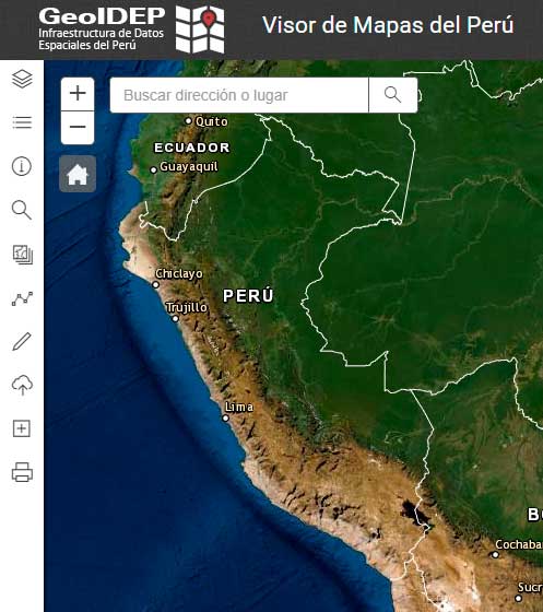 El Visor de Mapas de la Infraestructura de Datos Espaciales del Perú es una herramienta que permite la exploración y visualización de mapas y capas de información espacial proporcionados por entidades públicas y privadas, que permiten la exploración de información georreferenciada. Ingrese Aqui